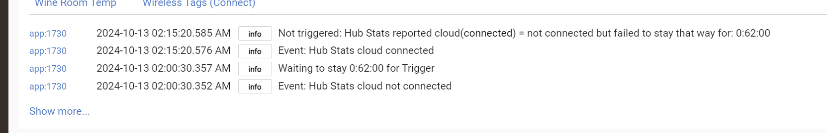 This is my hub that runs all my LAN and Cloud integrations, they all keep working normally, so this suggests it’s a Hubitat issue.