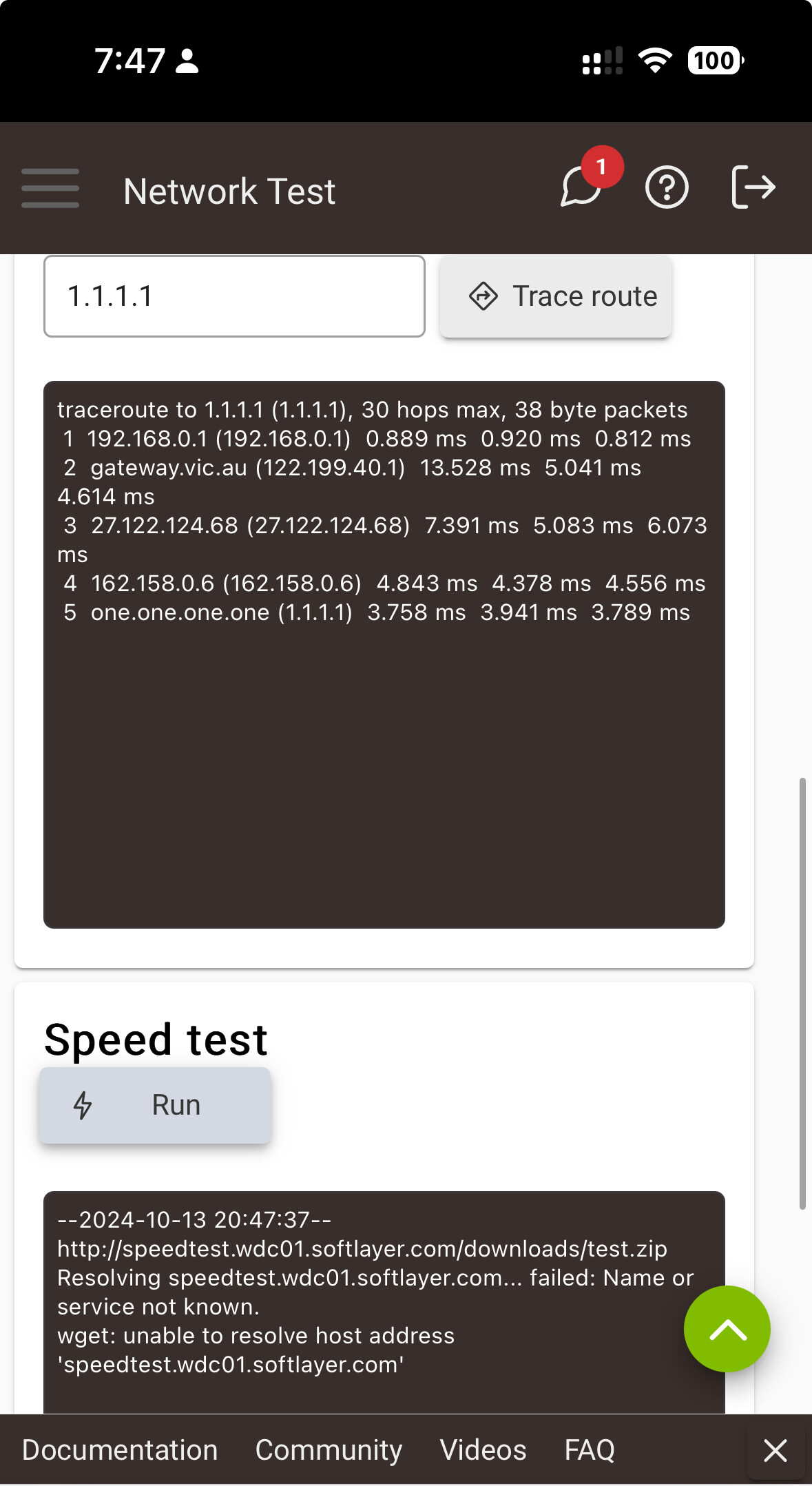 speed test never works anymore url is invalid.. weird it cannot ping the gateway what is your default g/w even if cloud is down your router should be up and you shoujld be able to ping the gw.
