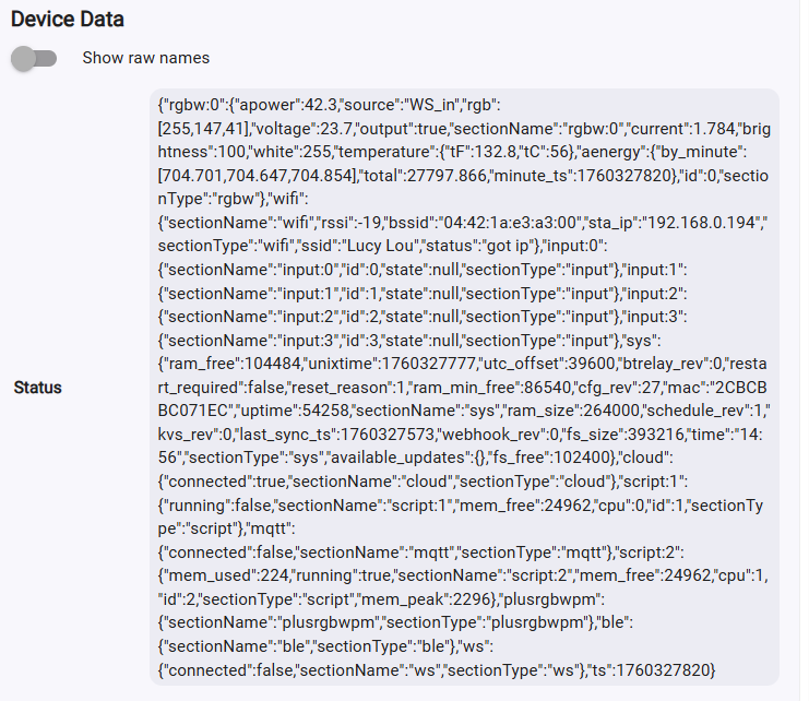EDIT ADD: Just noting the following in the Debug Log and this prompts me to ask the additional question of how to get that Temp Data through to the Device page and somewhere that it can be used in HE. Unless it's already available and I just haven't looked deep enough.