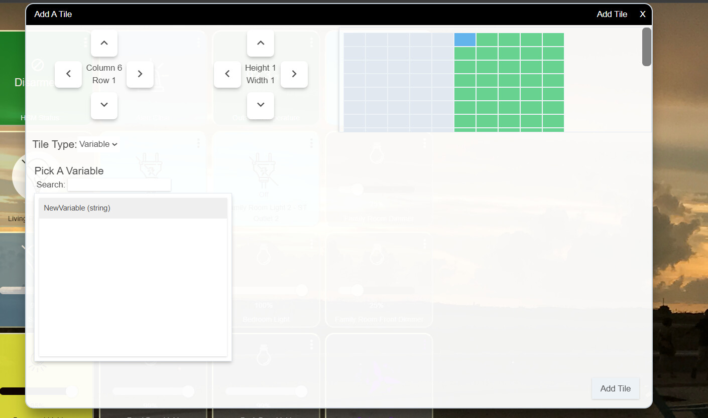 Sorry, when I do that, it only shows the variables that I have previously assigned to my dashboard under earlier, but recent, firmware. It does NOT show ALL my global variables to pick from. What I want to do is add more variables to that list - and as far as I knew, that was with the dashboard app. What am I missing?