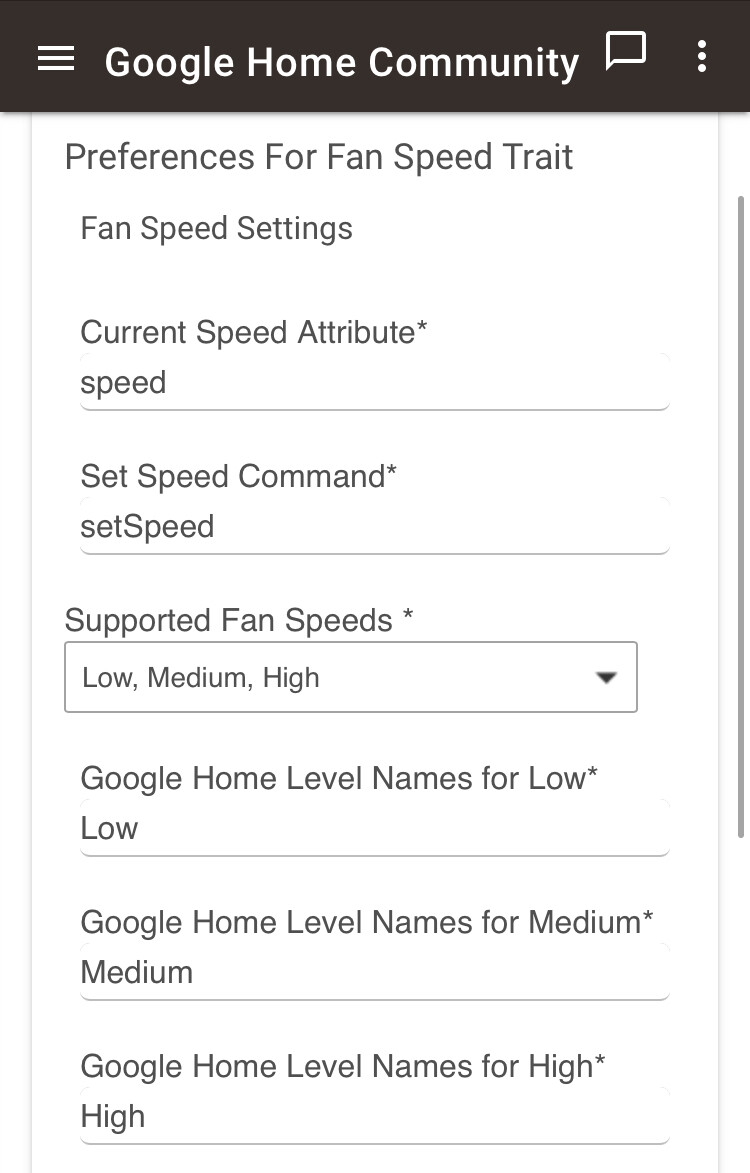 Has anyone managed to get this app to expose a fan with speed control to google home?