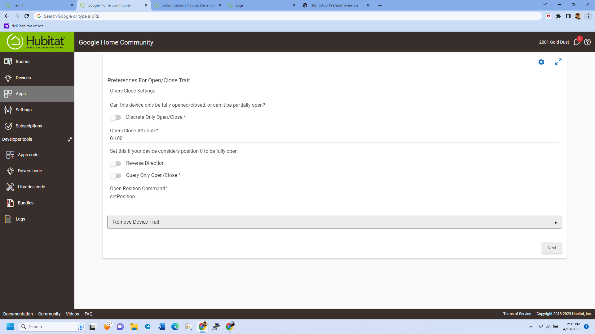 For most traits I tried to give reasonable defaults for these sorts of attribute settings. Sadly the Open/Close trait maps to several different Hubitat device types that all use different attribute names (contact for contact sensors, door for garage doors, windowShade for shades, etc) so there wasn't really a good default to pick.