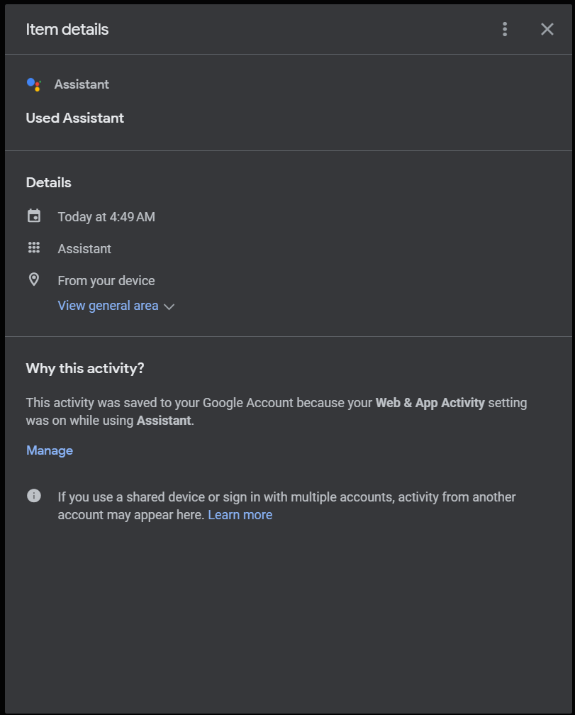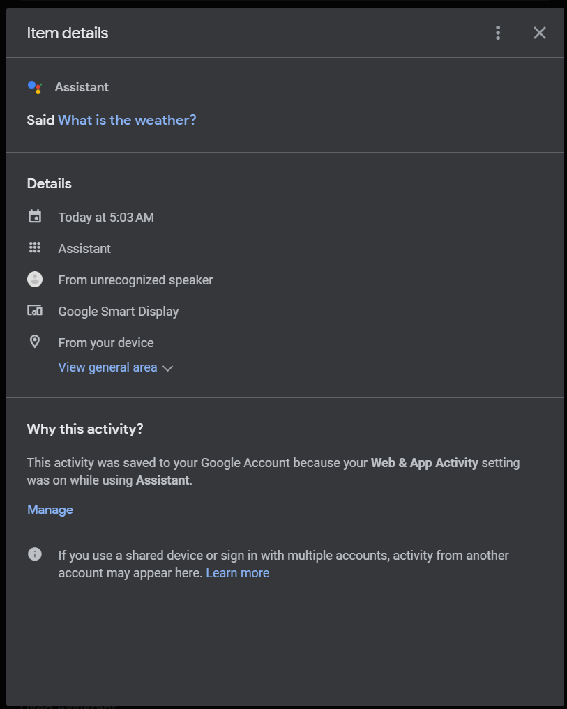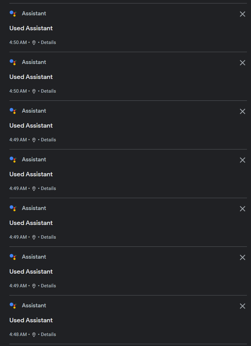 What's odd from the Google activity feed that correlates to the lights toggling is that the "used assistant" events just show "from your device" instead of showing which device.