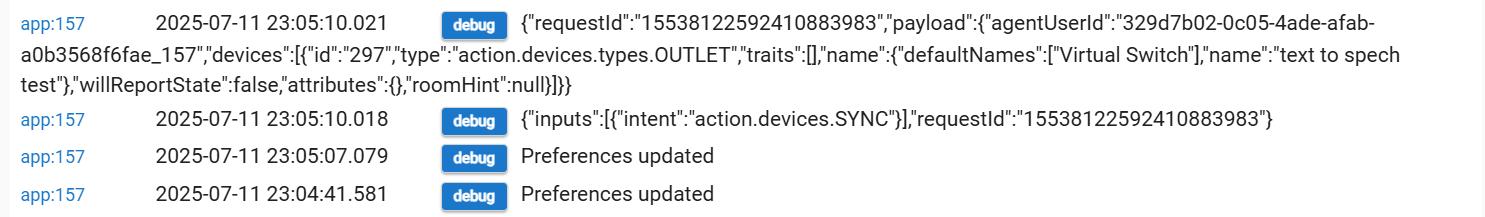 I've rebooted smart speakers and the hubitat hub just to be on the safe side. I enabled debugging on the app. Watching the live logs after issuing a simple on/off command for a light displays nothing in the logs and the speaker responds with "Sorry, I didn't understand."