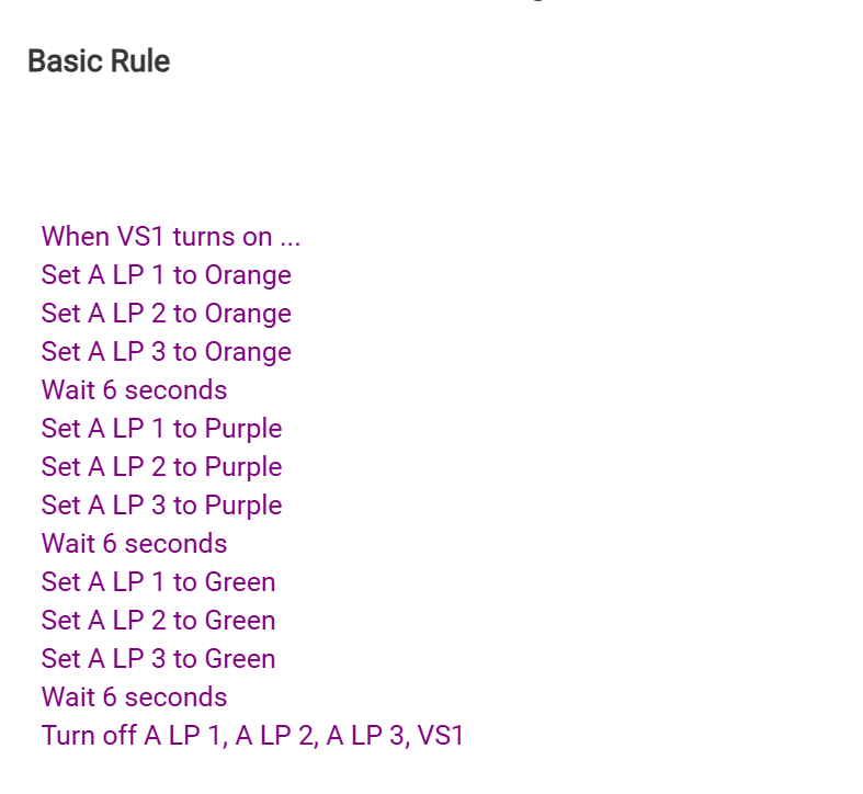 My echo will do it without problem in their routine but the routines are nowhere ad good as the basic rules as I want it to repeat in various time cycles with other colours involved, I don't use HomeKit or dash boards, I use alexa voice to start the routines up