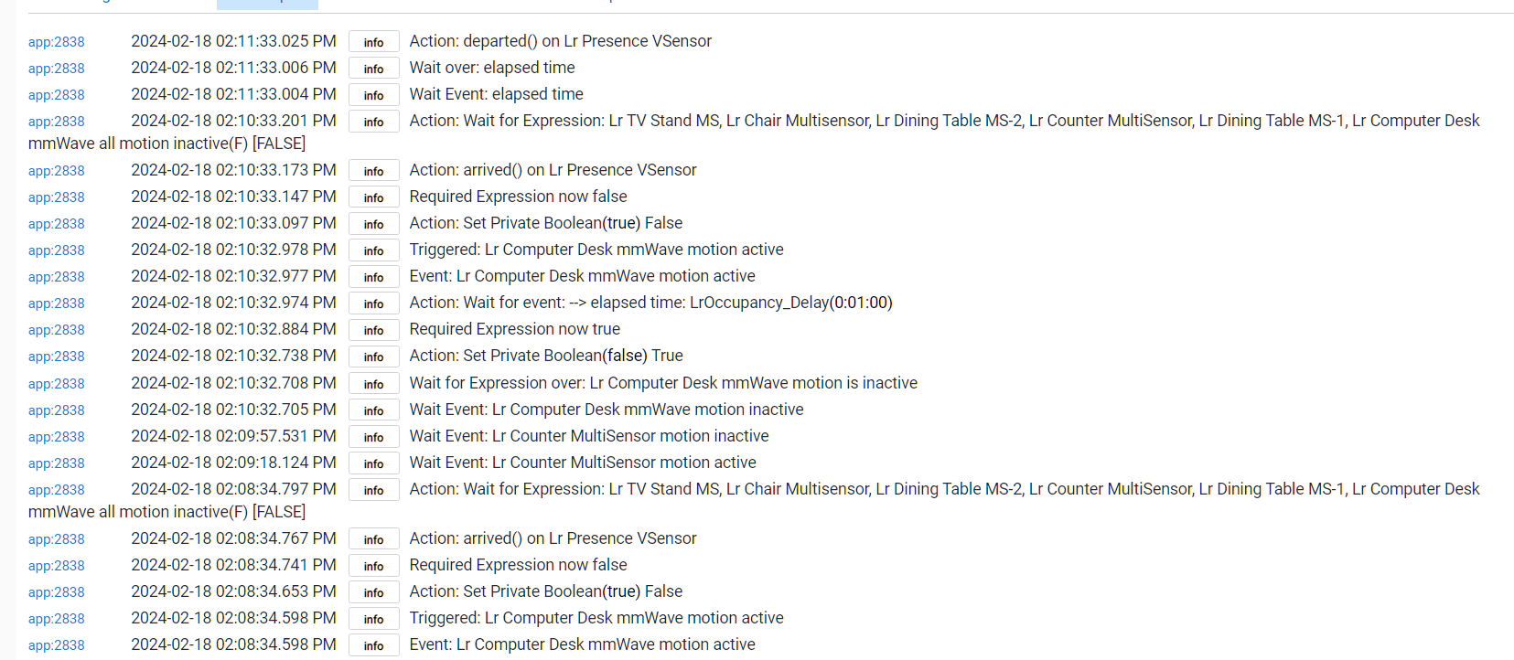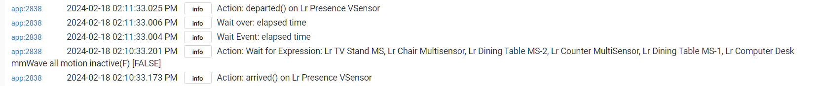 No, I want to set Virtual Presence Sensor to "arrived" state from any Motion Sensor in the area whichever becomes "active" first. Once this is done I don't want rule to be re-triggered by other MS in the area, However resetting Virtual Presence Sensor to "departed" state must be done after all MS in the area becomes "inactive" plus a delay. My rule was designed to do exactly this and most of the time it works as expected. However it happens to be a hidden problem. Rule works at least visually flawlessly if PB is not involved.