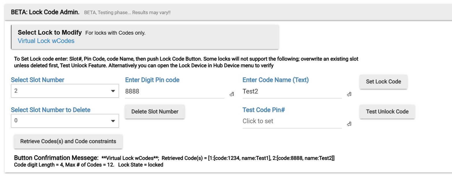 --Lock codes; set, delete, or retrieve codes. Ver1.1.0 and up. This part is BETA, I only have 1 lock type to test