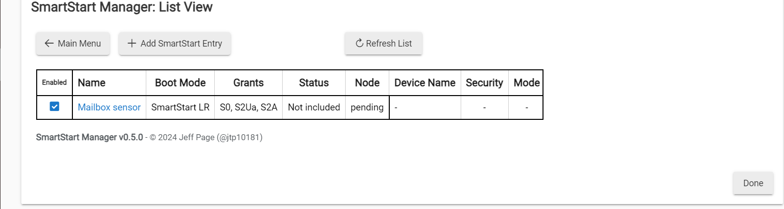 I deleted the pending smartstart entry, then I powered up the device and excluded it via the Z-wave add device. I then removed battery, Scanned the QR with the mobile app. Then went to SmartStart manager and made sure the Smartstart entry was there. Didn't change anything, set in LR boot mode. Then inserted battery and I get the error. Any ideas? Also rebooted hub after several attempts and tried again, no luck.