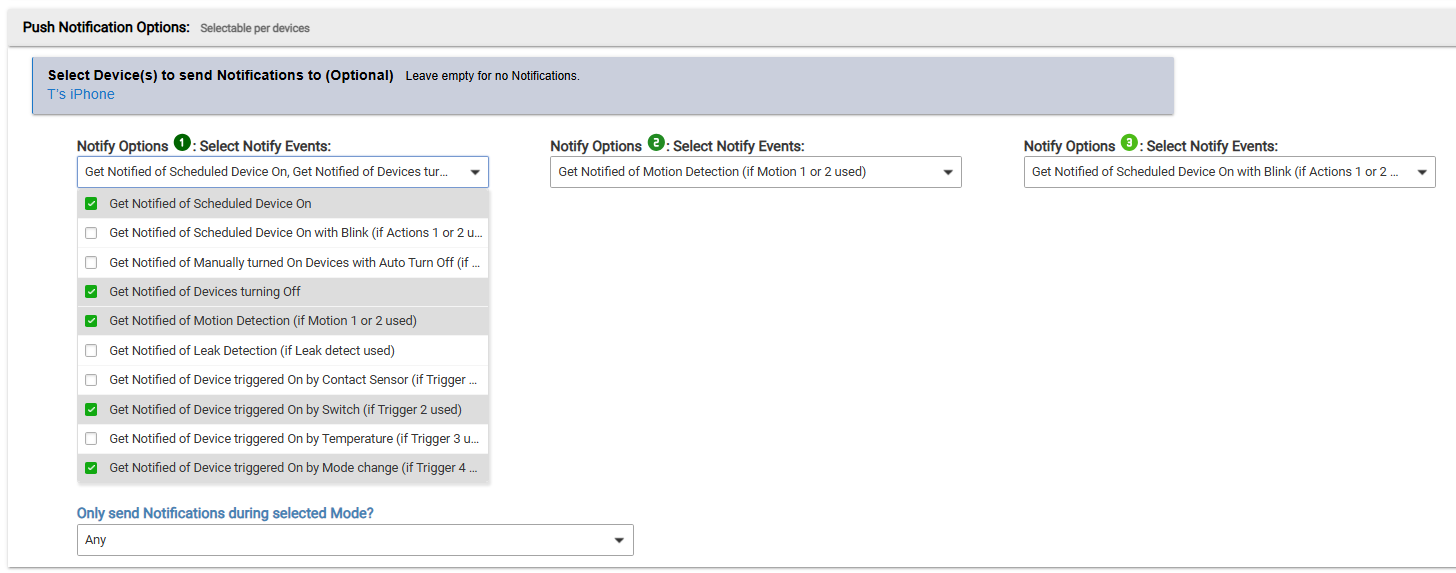 --Option to get push notifications for selected events per device. 3 different Notify maps.