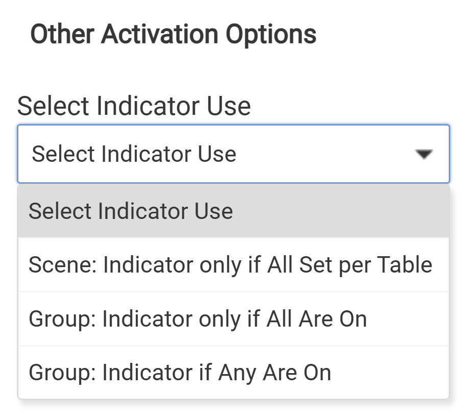I may have used the (older) nomenclature "Indicator" from the Groups & Scenes app, referring to how a particular Scene is shown to be Set or Not Active. RL tucks this away as an option under Means to Activate Lights â–ş Activate Lights Options â–ş Select Indicator Use where you find three distinct settings: