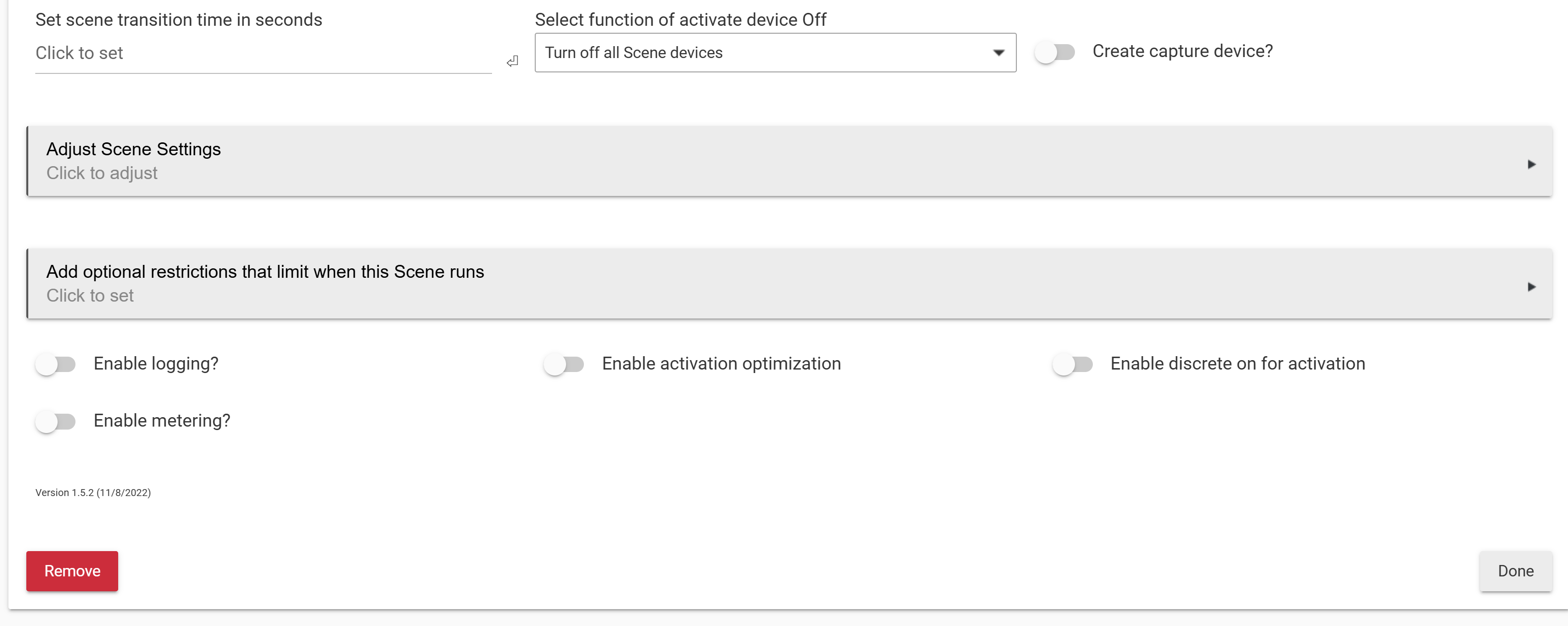 If a device was later turned on—or otherwise did not match the defined state—the scene status would change to “Not Set.” This condition would remain until the scene was manually activated again.