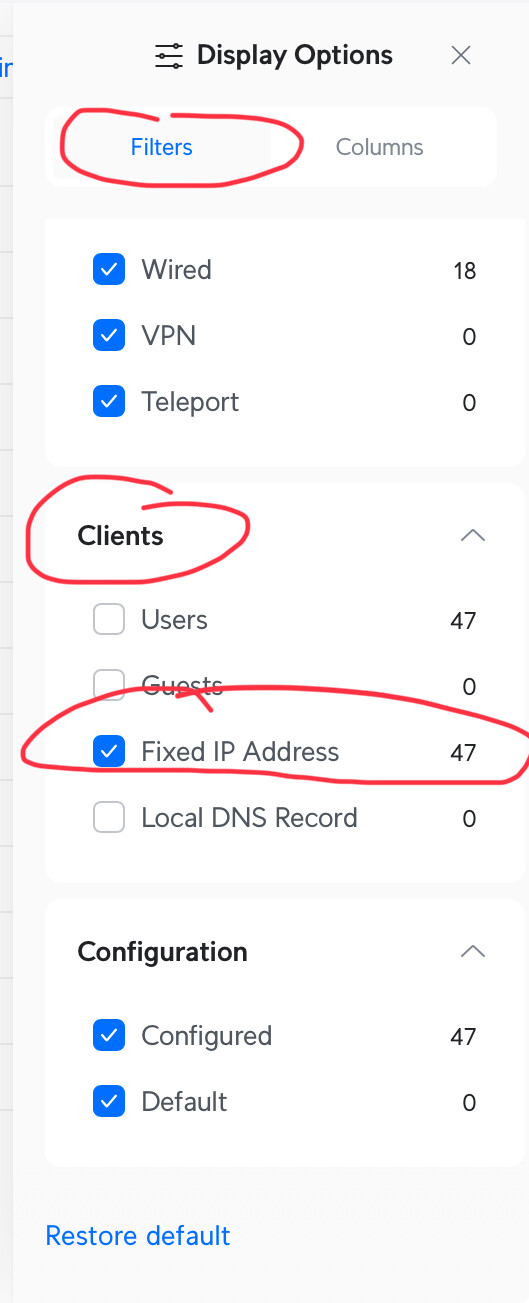 While UniFi make it easy to add a DHCP reservation for a device by selecting that 'fixed IP address' in the client page, it would be nice if there was a table somewhere where you could see all reservations. It's not that intuitive when trying to set a reservation on a device for a specific address, when the address has previously been used on an another device that has since been removed. IIRC you have to go into Client Devices and filter to show 'offline' to find the redundant device and remove the reservation.