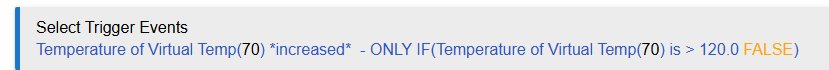 Trigger = Temp > 120 (I think this will trigger for any temp change above 120)
