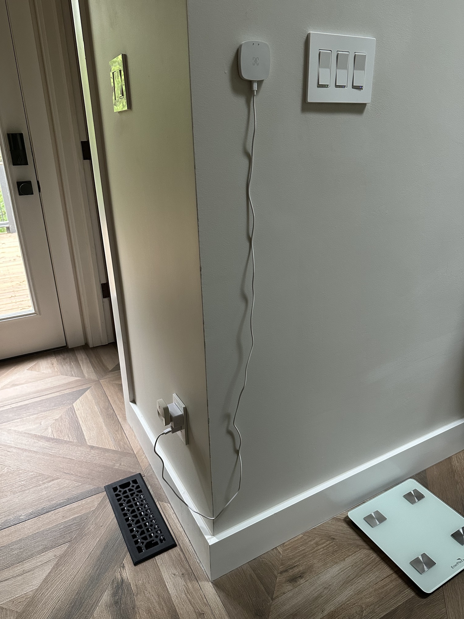 I actually ended up sacrificing one of my outlets on the vanity for that human presence sensor. I still need to test it out though by taking a bubble bath and a shower to make sure it still works.