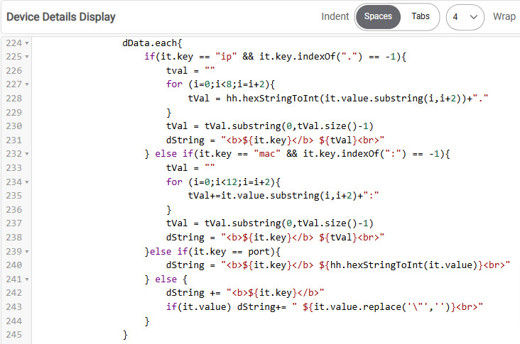 In delving into the way that device drivers are constructed for HE I found myself bouncing from page to page to wrap my head around the details particularly if I was trying to look at 2 or more devices. To speed up my analysis I wrote a series of small apps, that I finally decided to consolidate into one slightly bigger one that gave me all of the details about a device in one place. The current working result is at: