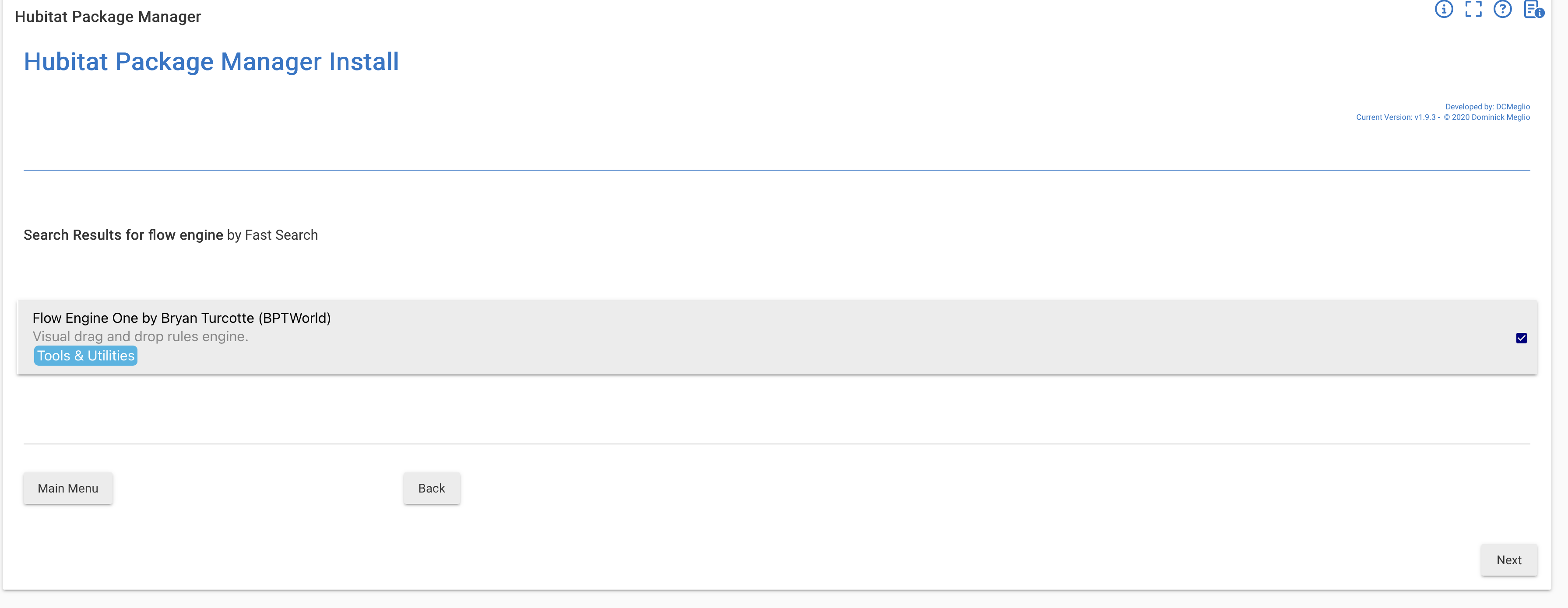 I just couldn't get it to install the new one. As I showed in my two previous posts when I went to install it as a new one in HPM I got the check mark for it thinking it was installed, and when I went to Install User App it wasn't there. When I went back into it, it now after doing a Repair in HPM it shows as Flow Engine One. I did click Done then.