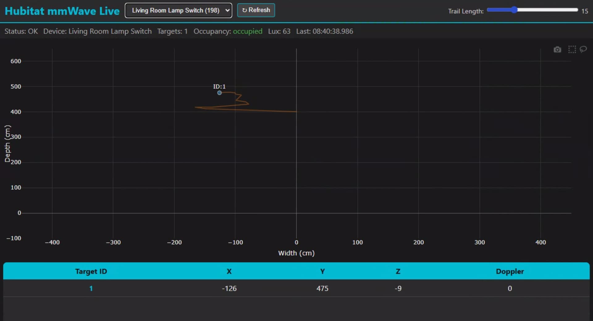 This is a community-developed web app that shows a live view of mmWave targets from an Inovelli Blue series mmWave switch (zigbee only). This is useful for testing/configuring the Inovelli mmWave parameters, including the detection zone dimensions as well as the interference area.