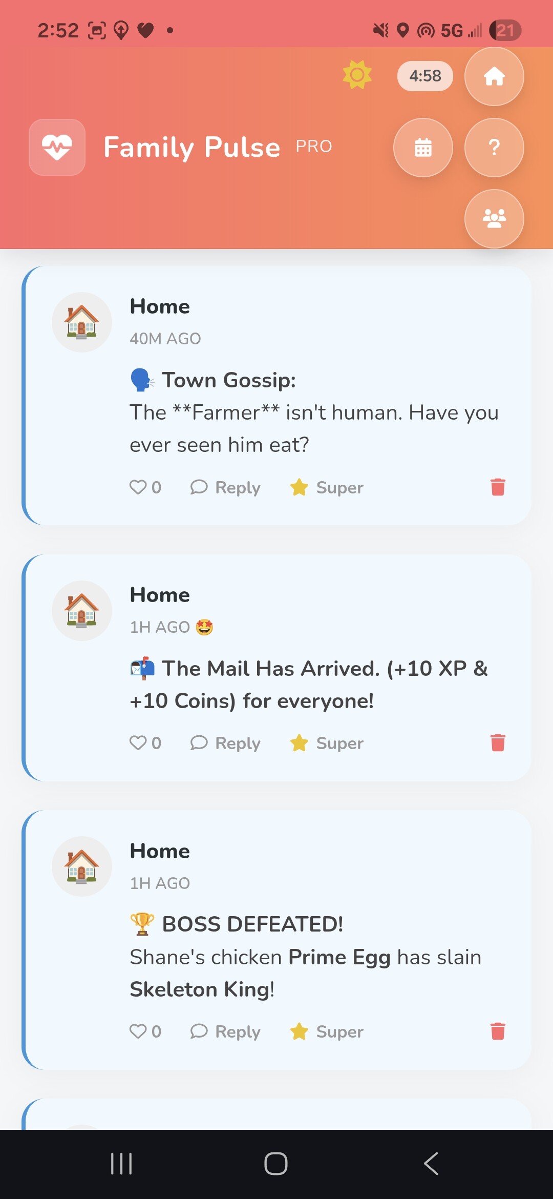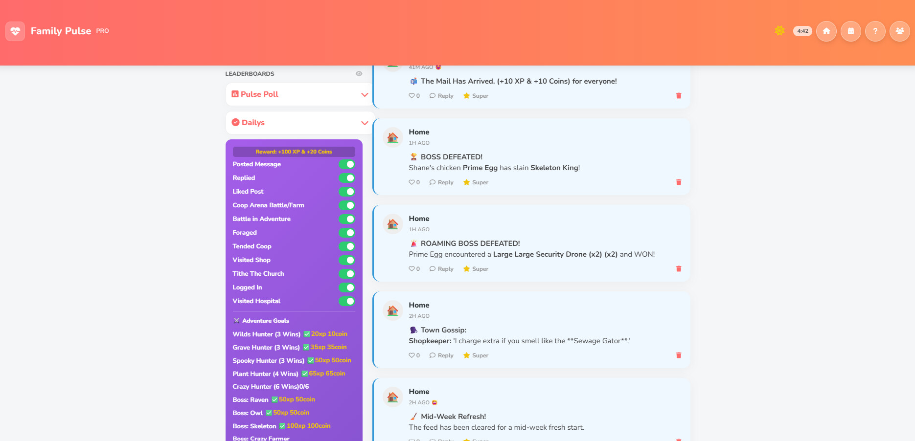 3. Family Pulse Pro (Child App): The internal social network. It generates the "Family Feed" where the house posts updates and family members interact via reactions and comments.