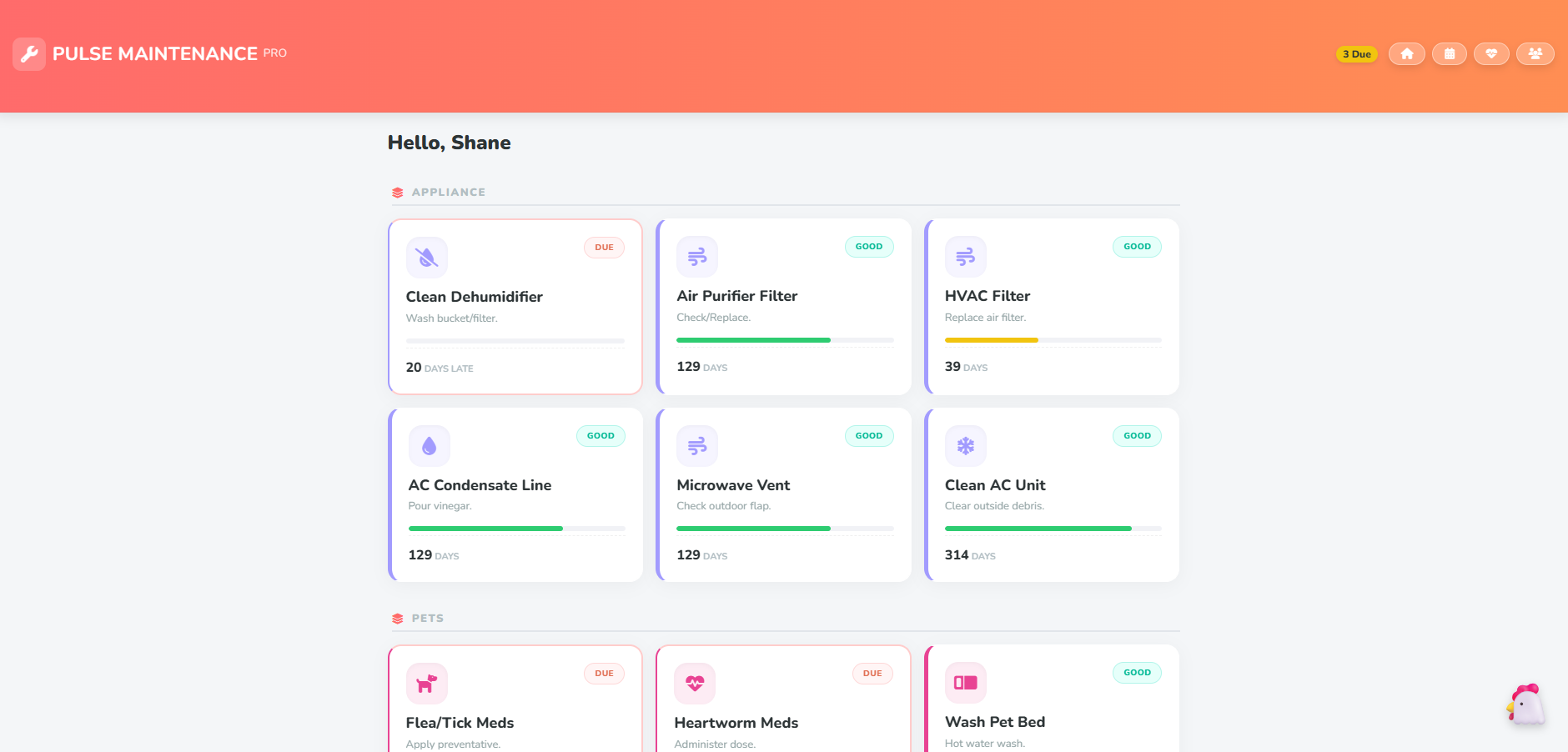 14. Pulse Maintenance Pro: The house's "Health Record." It tracks long-term tasks like HVAC service and filter changes, paying out XP to the family member who completes them.
