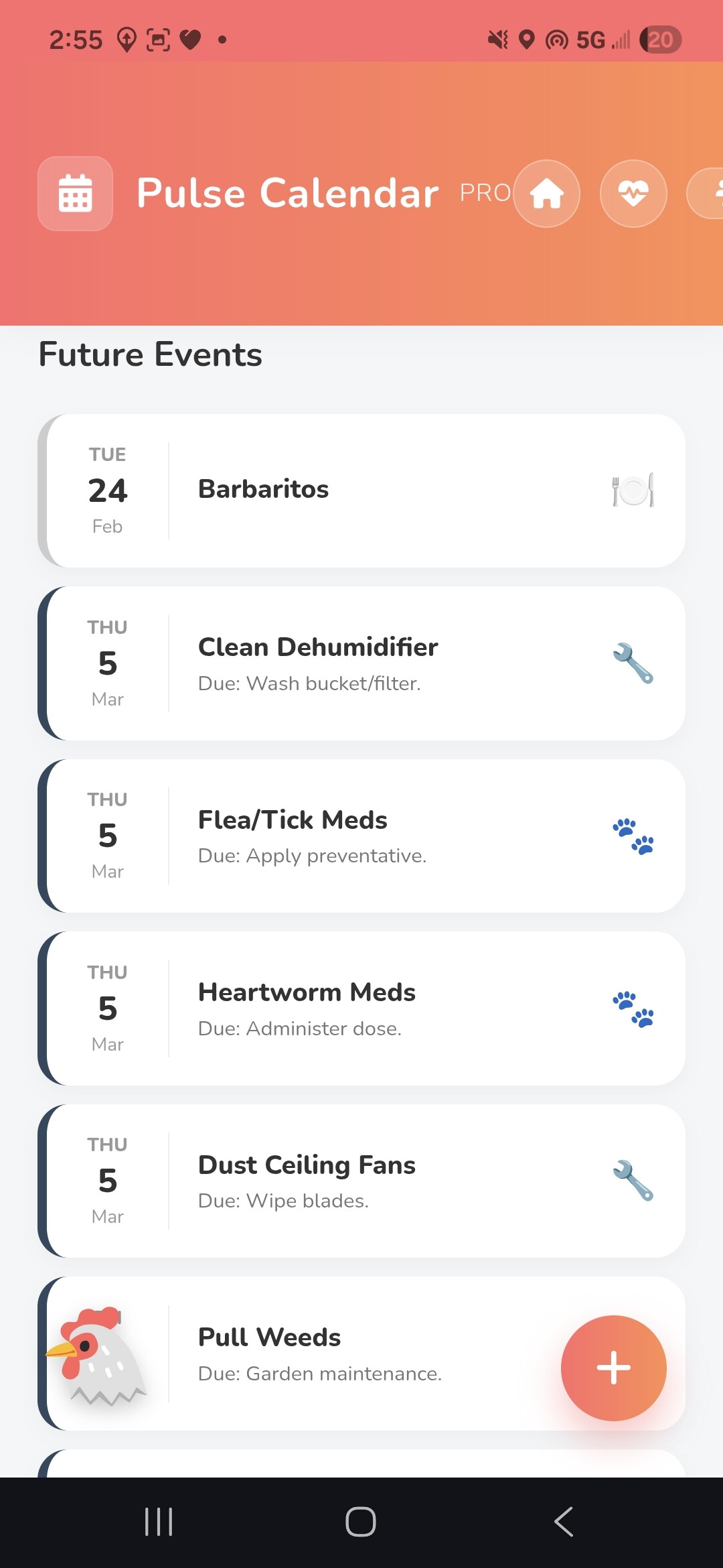 Pulse Maintenance: Manages home maintenance tasks, Automowers, and RoboVacs. Includes an "Agenda" view for due tasks, allowing you to snooze or mark them complete directly from the dashboard.