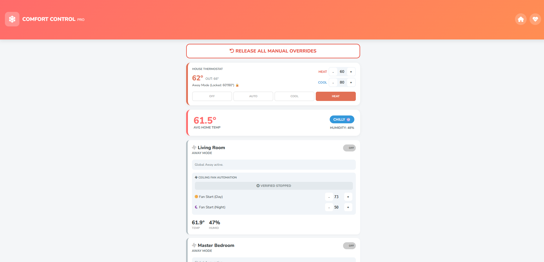 11. Comfort Control Pro: The climate conductor. It manages every fan, heater, and AC unit with "Sick Mode" integration to aggressively scrub air when someone is ill.