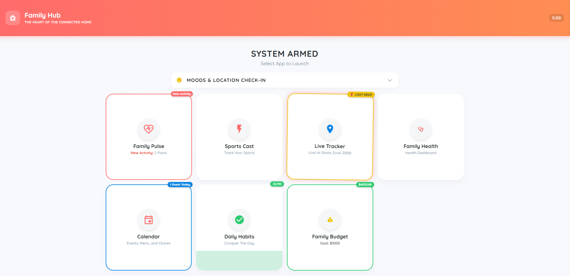 Family Pulse Feed: Connects to your family feed, highlighting the tile with a red pulse animation when new activity or posts occur within the last hour .