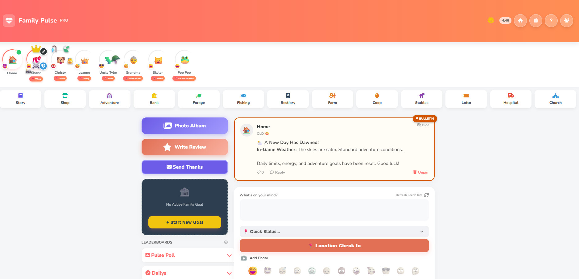 Daily Habits & Health: View habit completion progress and access the comprehensive Family Health dashboard.