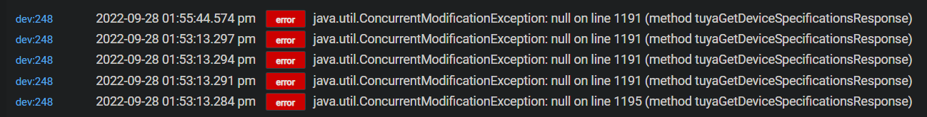 dev:4902022-08-08 05:12:43.342 pm errorgroovy.json.internal.Exceptions$JsonInternalException: unexpected character / on line 1764 (method tuyaGetDeviceSpecificationsResponse)