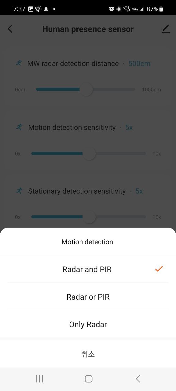 | motionDetectionMode | 1 - PIRandRadar |