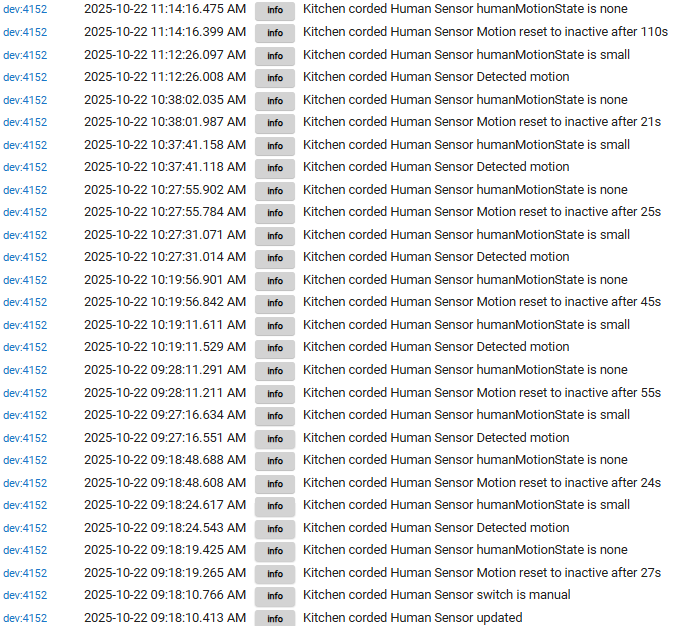 — no errors in the logs, and it’s reporting illuminance, humanMotionState, motion, etc. as expected — but I’d much rather check with someone who actually knows what they’re doing before I accidentally create the world’s most confused Webcore routines and send my automations into an endless loop.