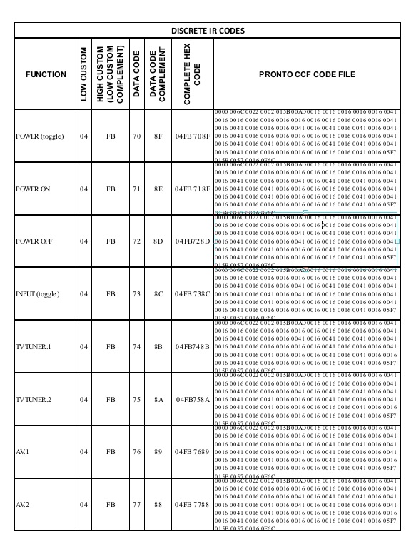 Those are labeled as Pronto codes, which is a standard format that my integration can support.