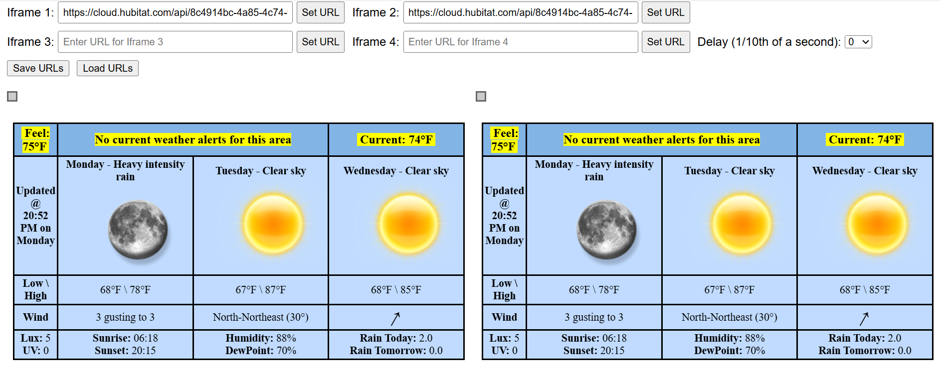 The problem is this. When you load two cloud endpoints into iFrames in short succession you will often get the wrong output being presented. This is how it should look.