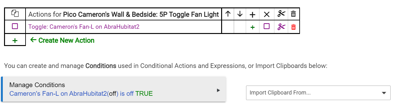 Again, the only change in Button Controller has been to change the fan device from the old fan devices to the new fan devices. Simple point-and-click change. Control of the fan from its device page all works normally, so not an issue w/the fan.