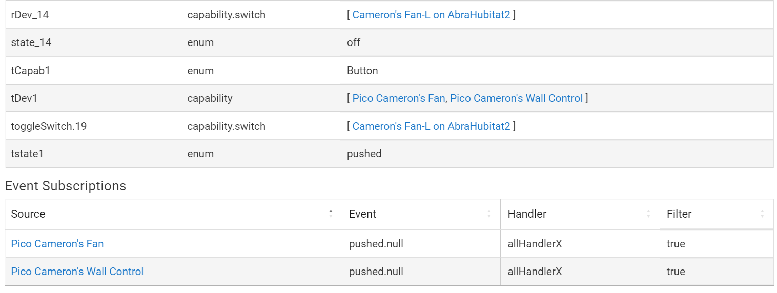 The fan and bulb devices were all newly added to a hub. Fan devices added via the HE Bond Integraion on my second hub and then used to replace the existing fan devices in the button rules on my first hub. The bulbs I had issues with (actually was two bulbs in two rooms) were also newly added to the hub, and then used to replace existing bulbs in existing rules. Maybe a red herring, but thought I should note it. The Picos have been on the hub for a year or more.