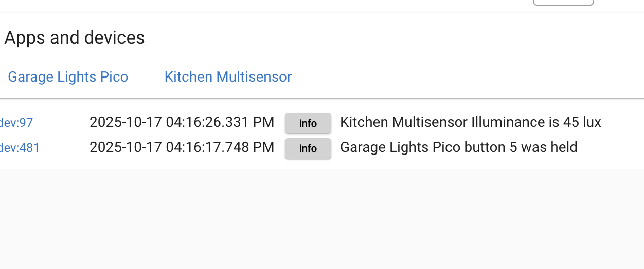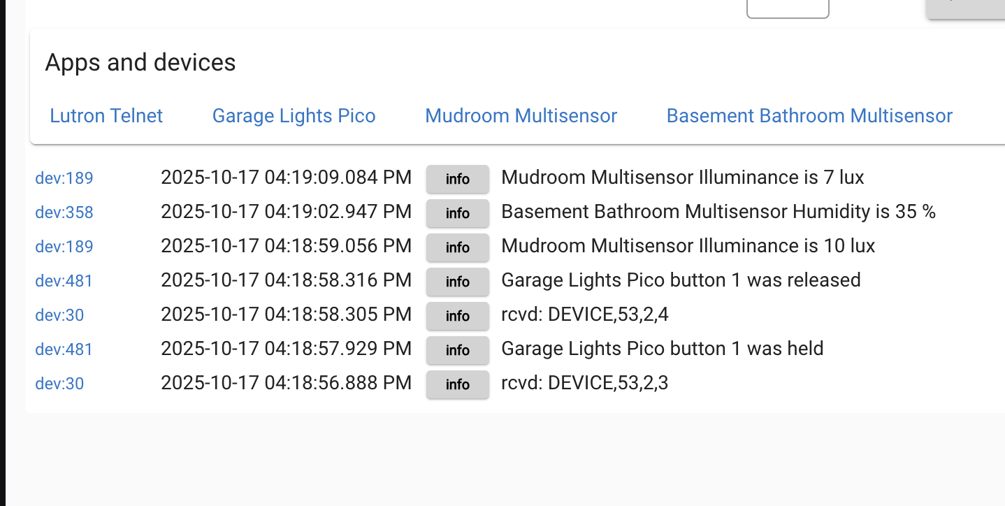 Back to my original question, with debug logging enabled in the lutron telnet driver, does pushing a button (any button) on the pico generate a log event in the live logs?