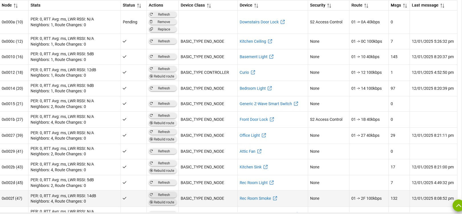 I rebooted and everything seemed okay, but today I'm noticing some devices aren't working, especially my locks. They have 0 messages since the reboot. Other numerous devices are showing "Generic Z-Wave smart switch" now.