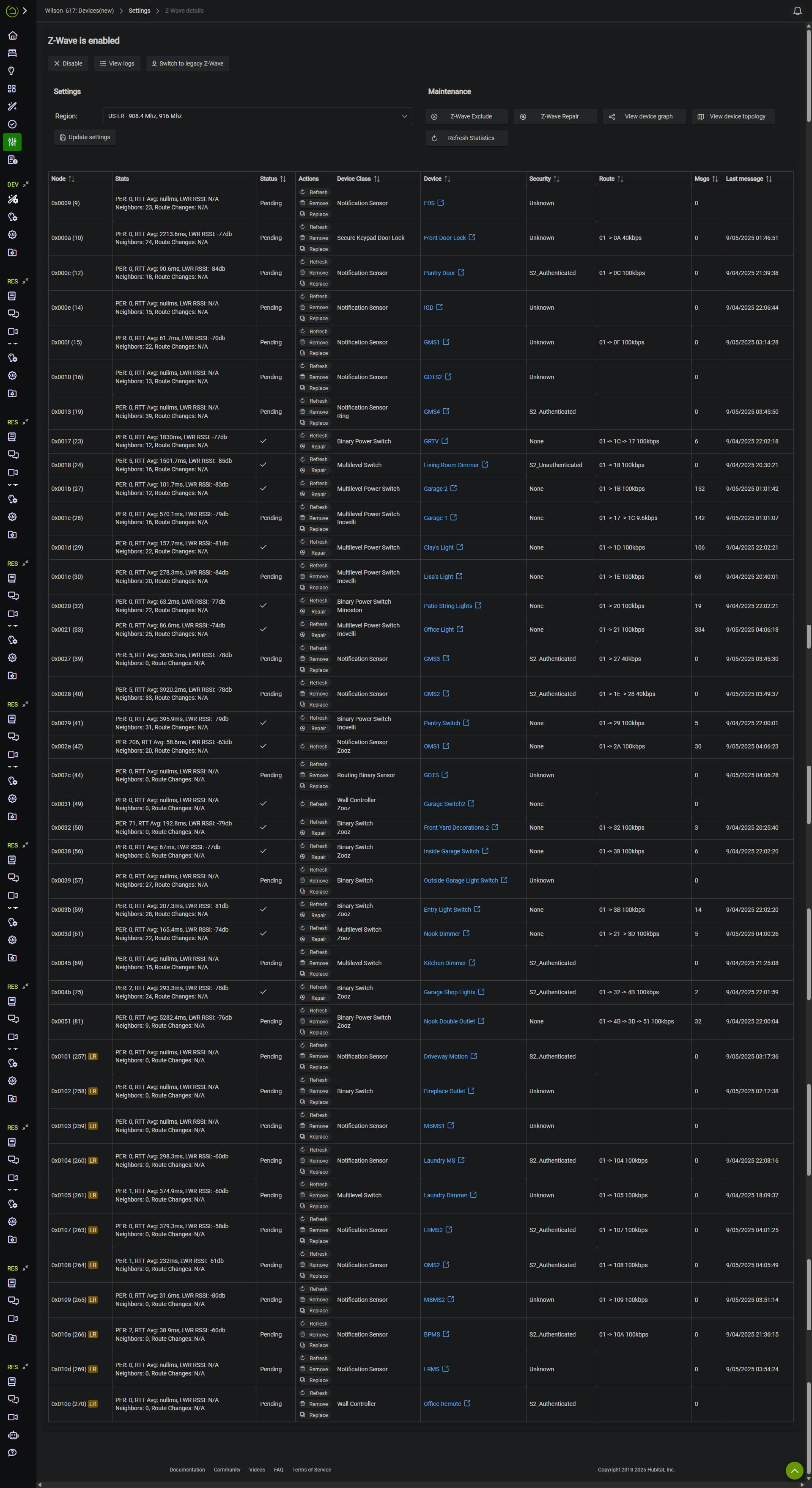 Here are my zurrent Z-wave details as of this afternoon, this is about 24 hours out