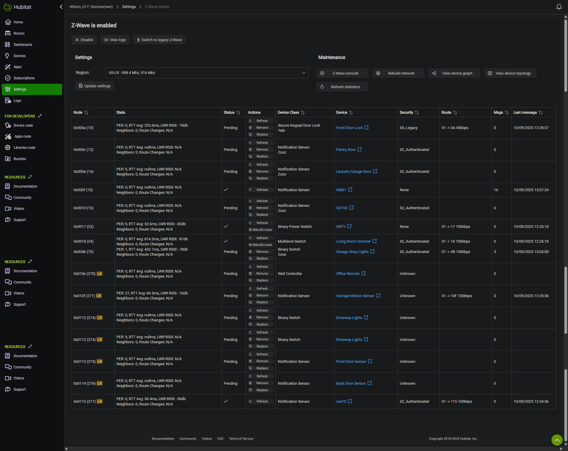I've done a full reset a few times. Just did one this morning. The zwave devices above are after that) Zwave logs have been blank since. I have NOT yet switched it to ZwaveJS. I guess I could now.
