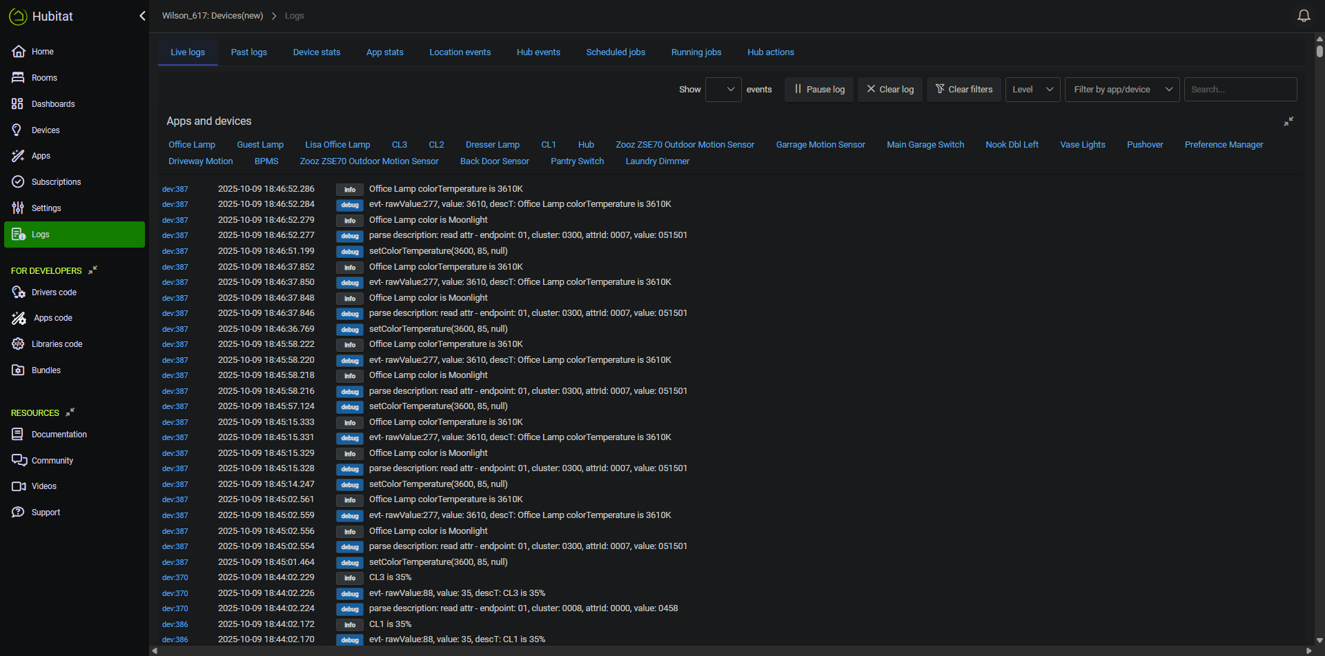 Did you reboot it again since the previous screen shot. It looks like the hub was rebooted as some devices that had last message date and time do not in the most recent screen shot.