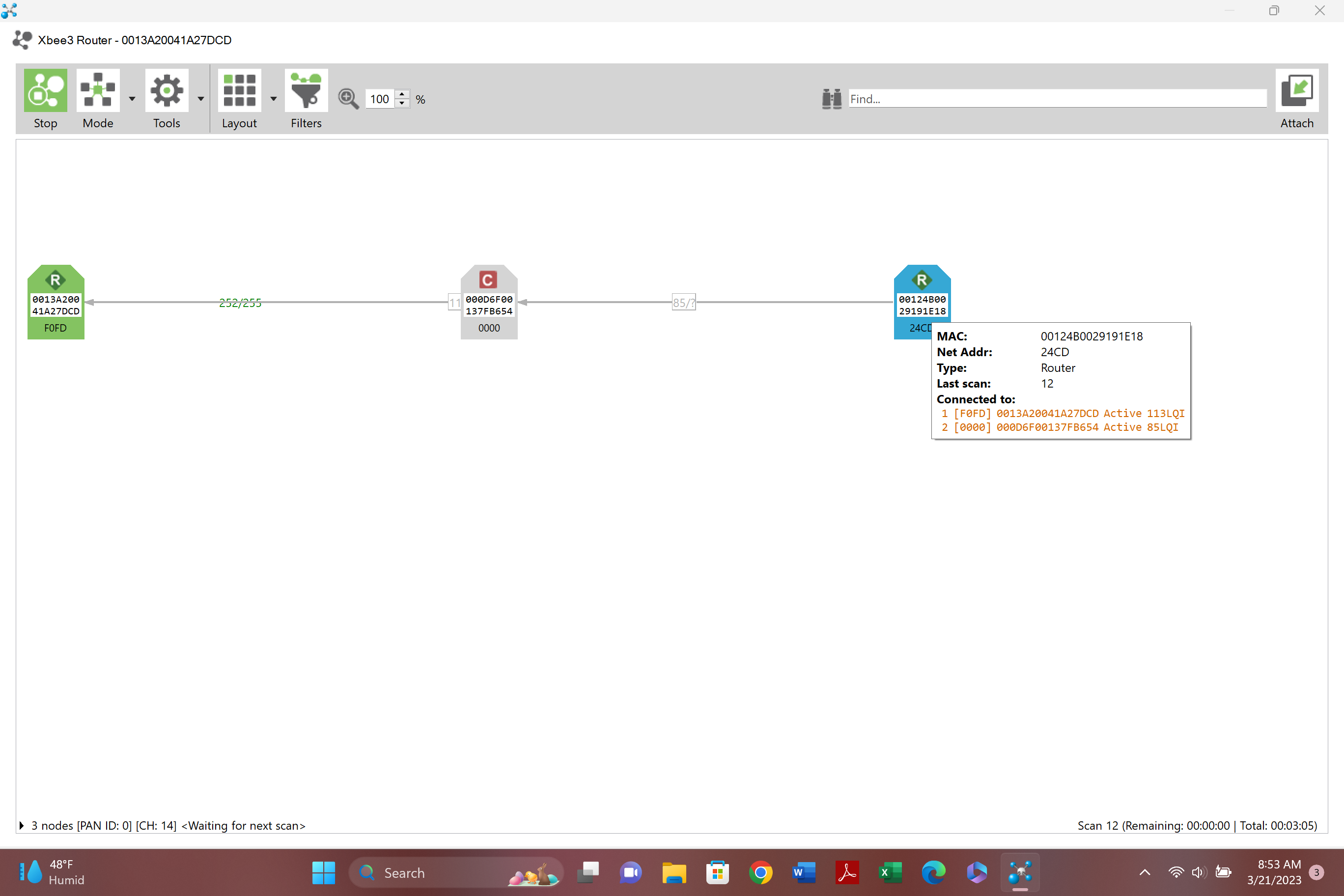 This is how the C8 see's the signal to the Sonoff The Sonoff starts out under 200 these devices are in the same room about 10 feet max away from the C8 Xbee 3 devices nice signal both ways