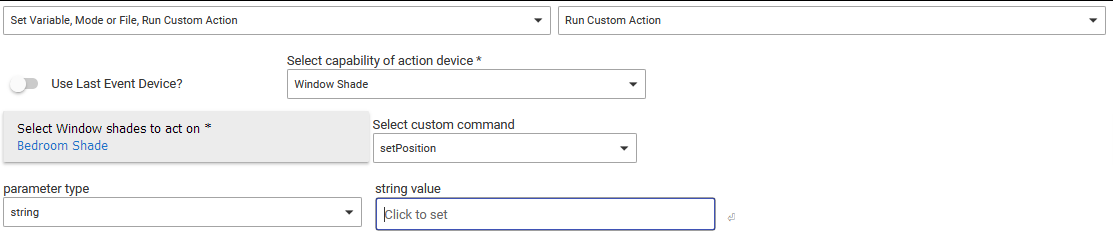 Now I want to also be able to voice-control it via Google Home, so I think I'm going to need to create virtual shades for the top and bottom rail so I can set those with a Google automation, because Google doesn't recognize dual motors either... But now I'm stumped as to how to get the virtual rail's position to control the real one--there doesn't seem to be any way to connect those values in Rule Machine.