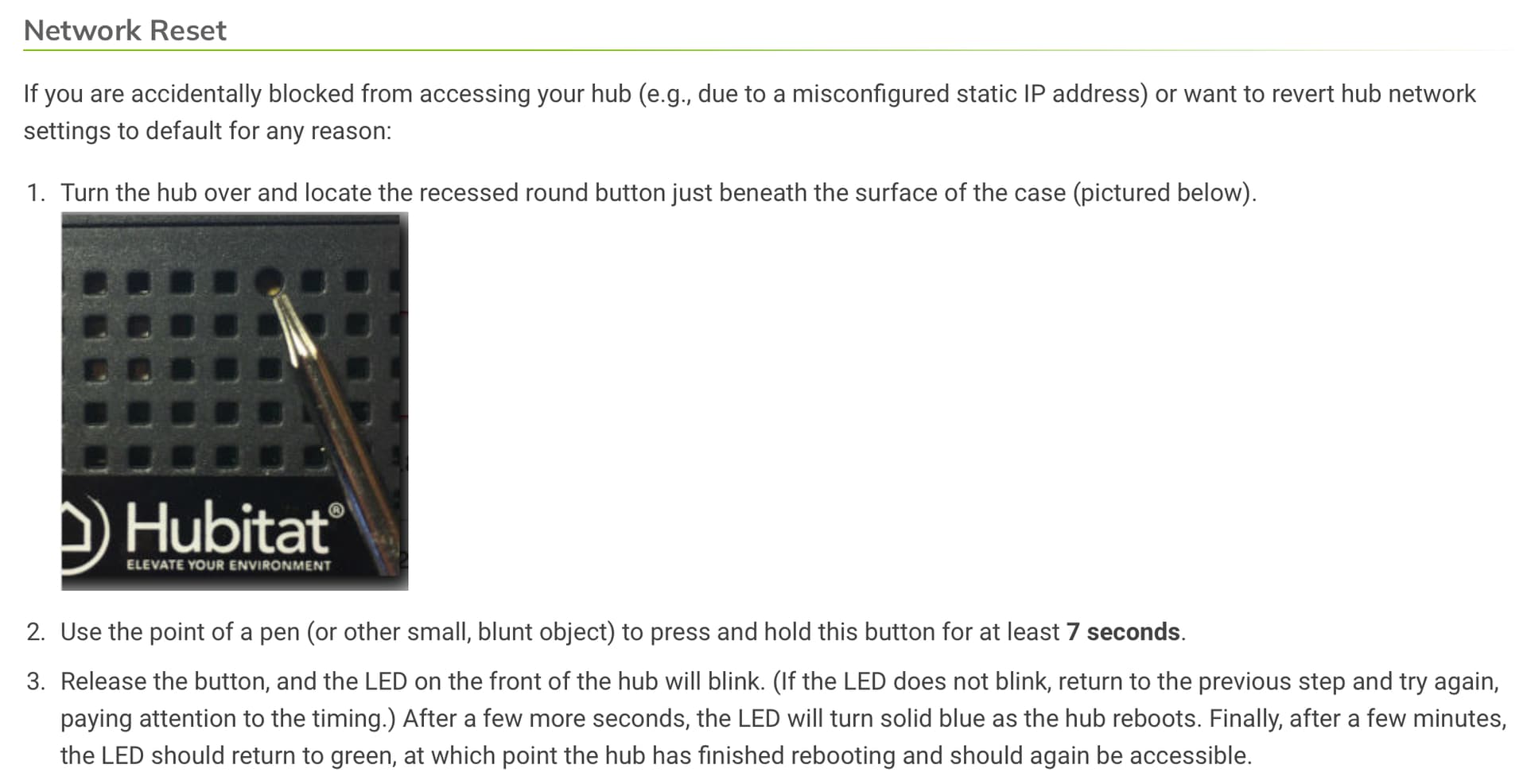 Also, after all the things you have done with your hub, we have no idea what state it is currently in. If you followed the proper instructions for resetting the network card, we would at least be in a known state to begin further trouble shooting.