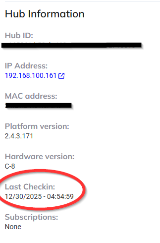 - You could connect to my.hubitat,com to verify that your hub is on-line (Recent Last Checkin time), and what address it is using.