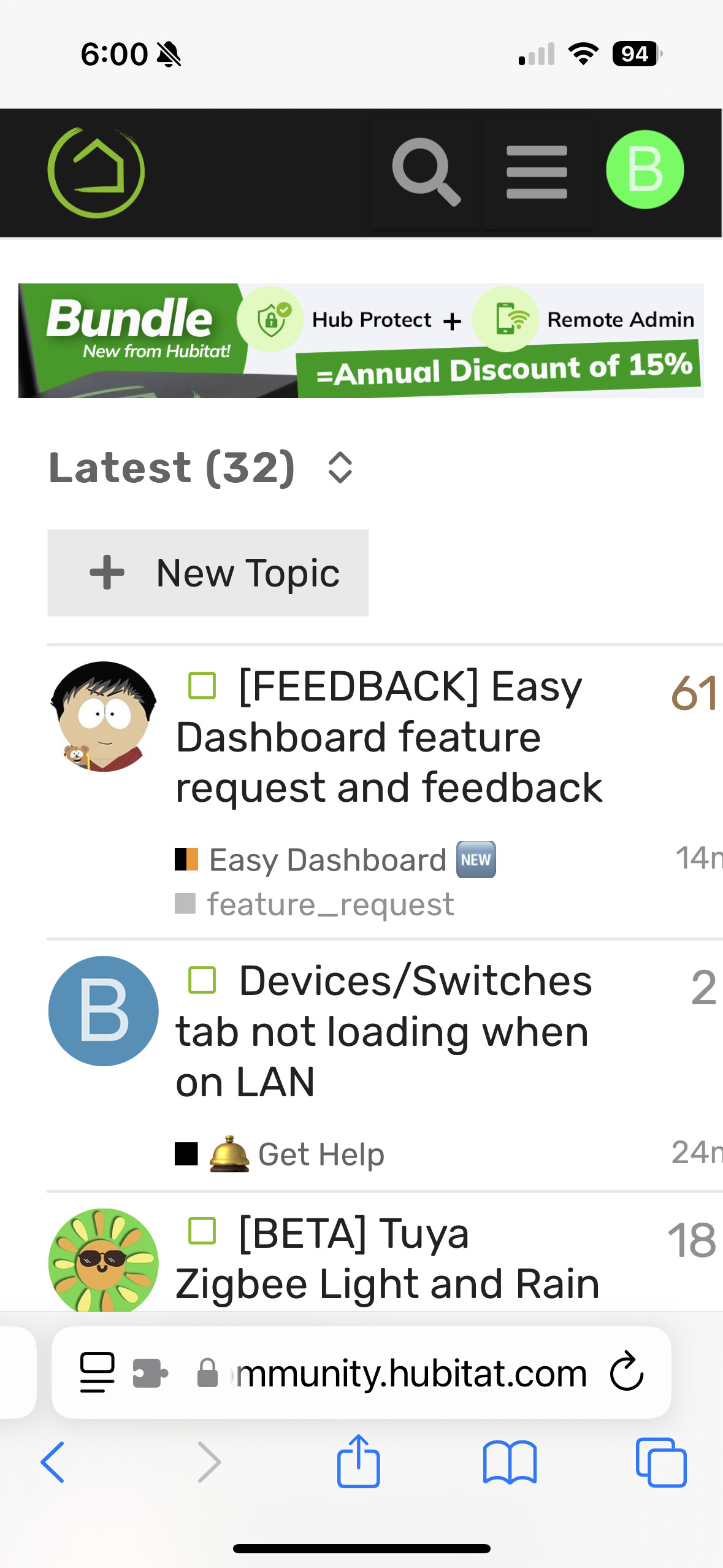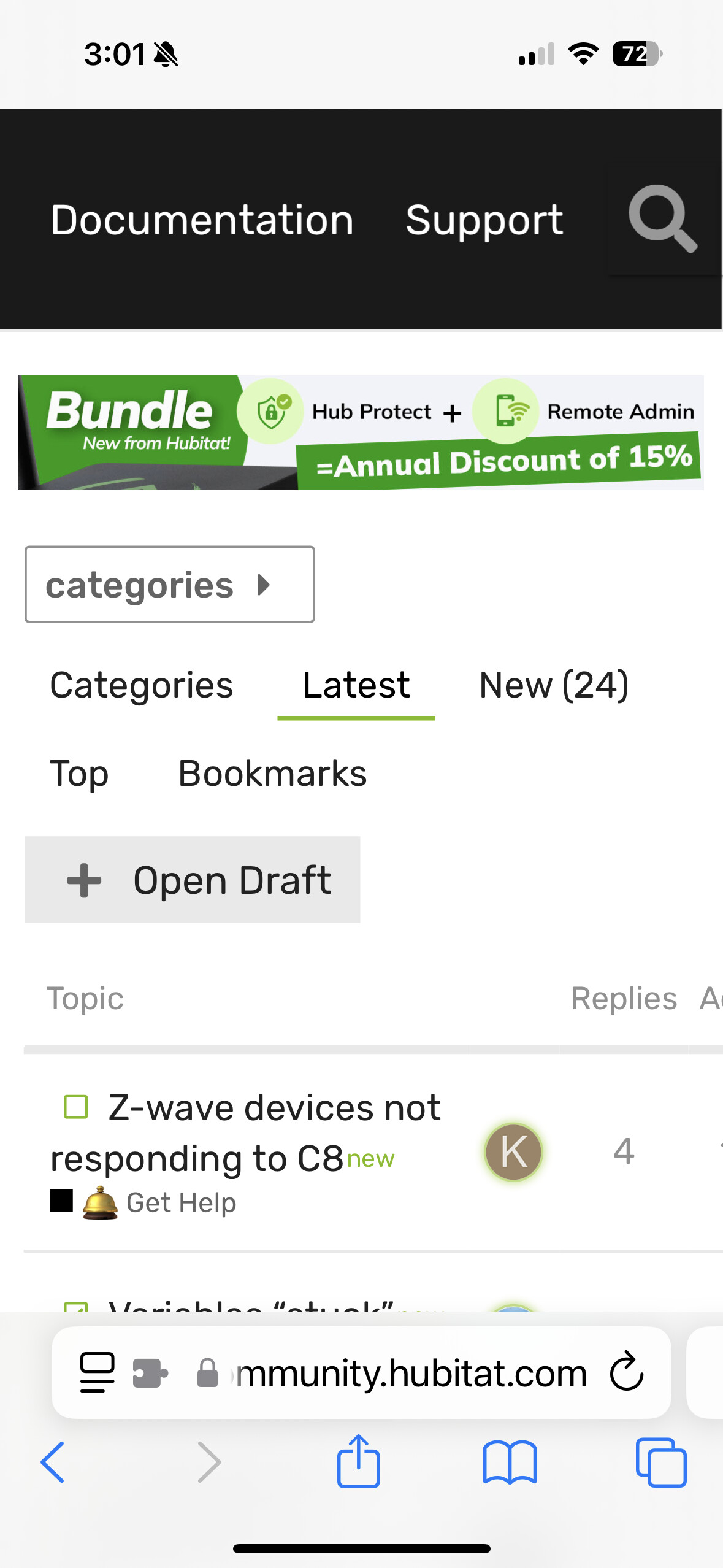 That does highlight an iPhone formatting issue that has existed for as long as I can remember. In Safari there is still a small width issue that makes the enables the horizontal scroll, making the view 'squishy'. That scroll issue does not exist on other Discourse community websites. And it does not exist in the Discourse version of Hubitat community.