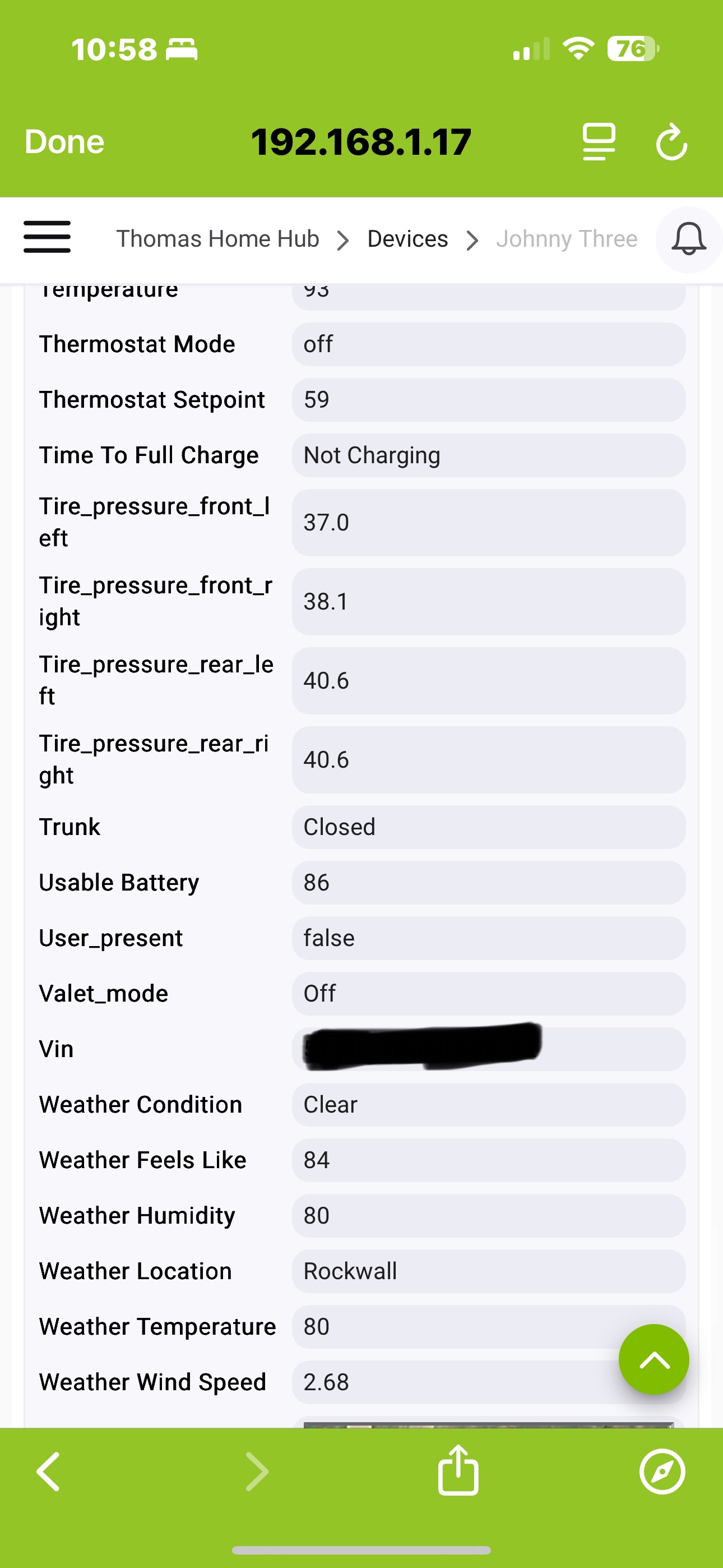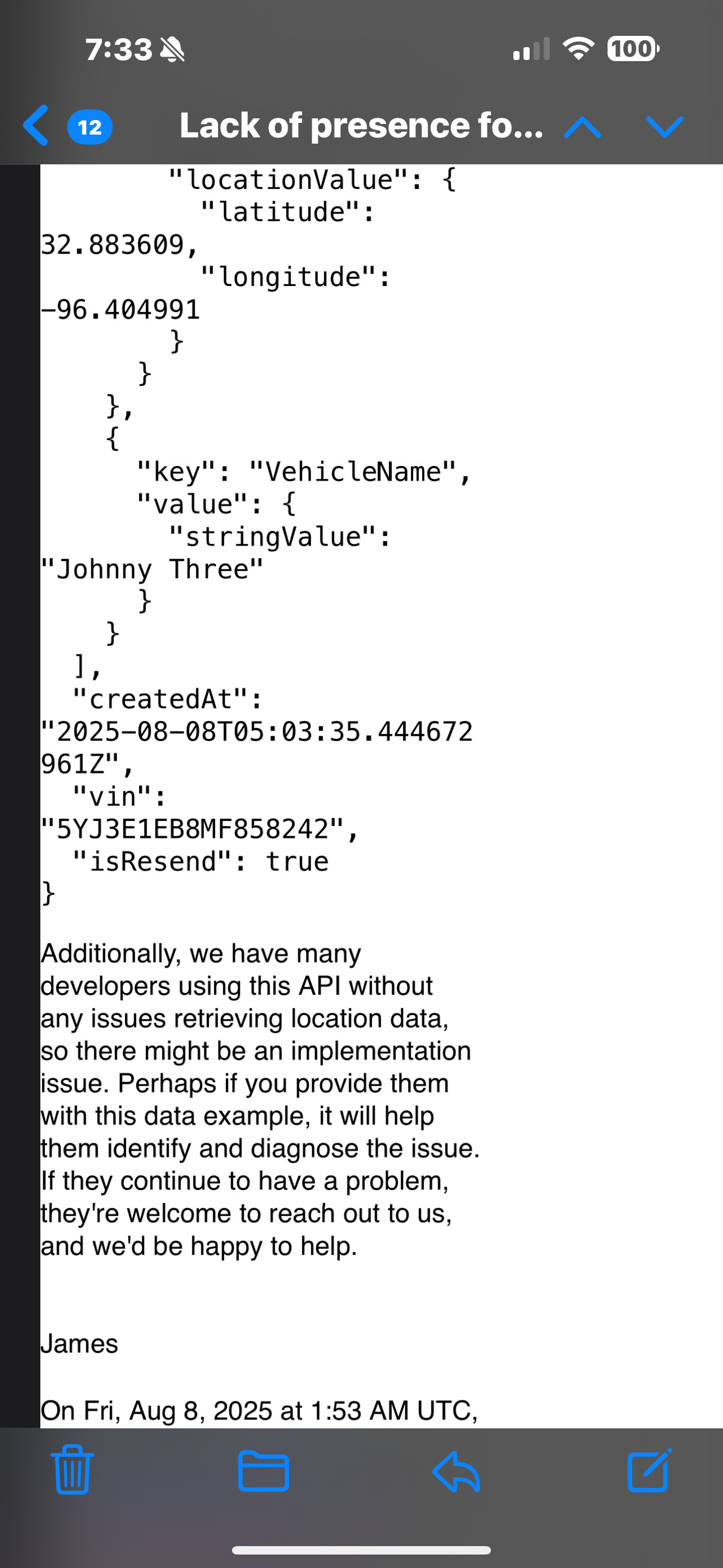 I see long/lat and headings. Car does not register as present. Last two days. She left for the day. Returned. Not updates for presence.