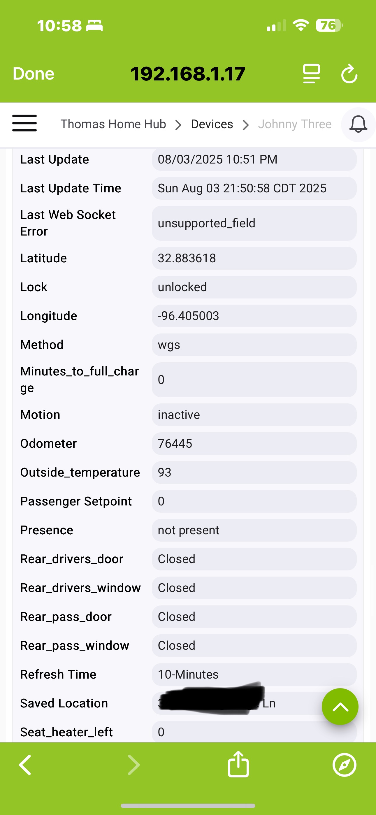 I can see the long/ latitude in the logs. Maybe I should let her leave for work tomorrow and see if it updated tomorrow when she arrives. Maybe when I left it didn’t give it time