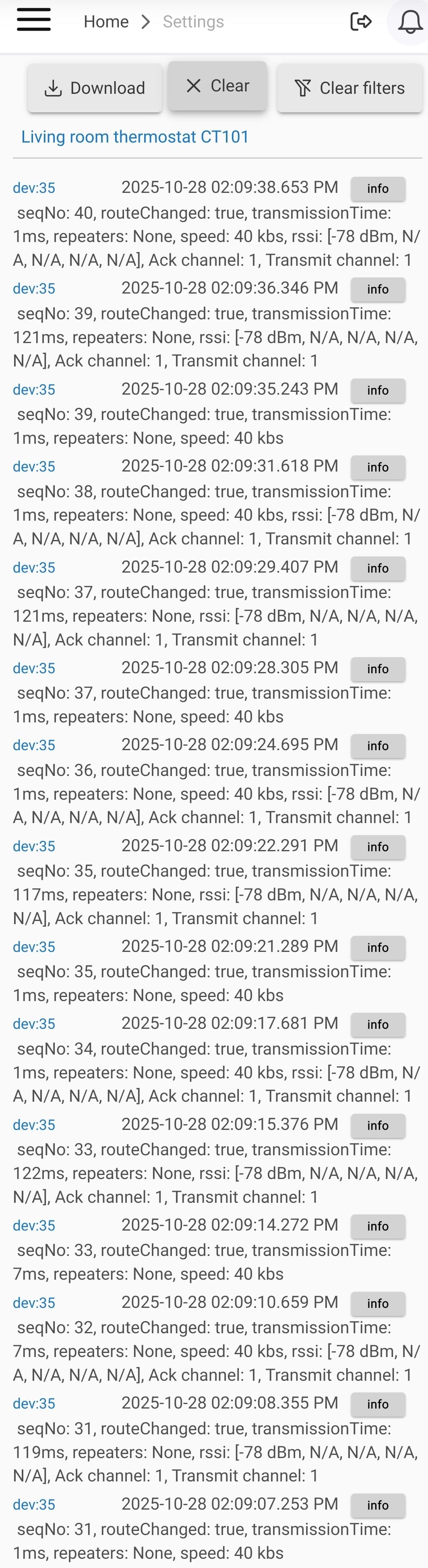 I've looked at general logs under "past logs" and everything seems ok, but when looking at live zwave logs there must be a problem. I tried turning all logging off under the thermostat preferences tab in case that's clogging it up. Any help is appreciated, thanks!