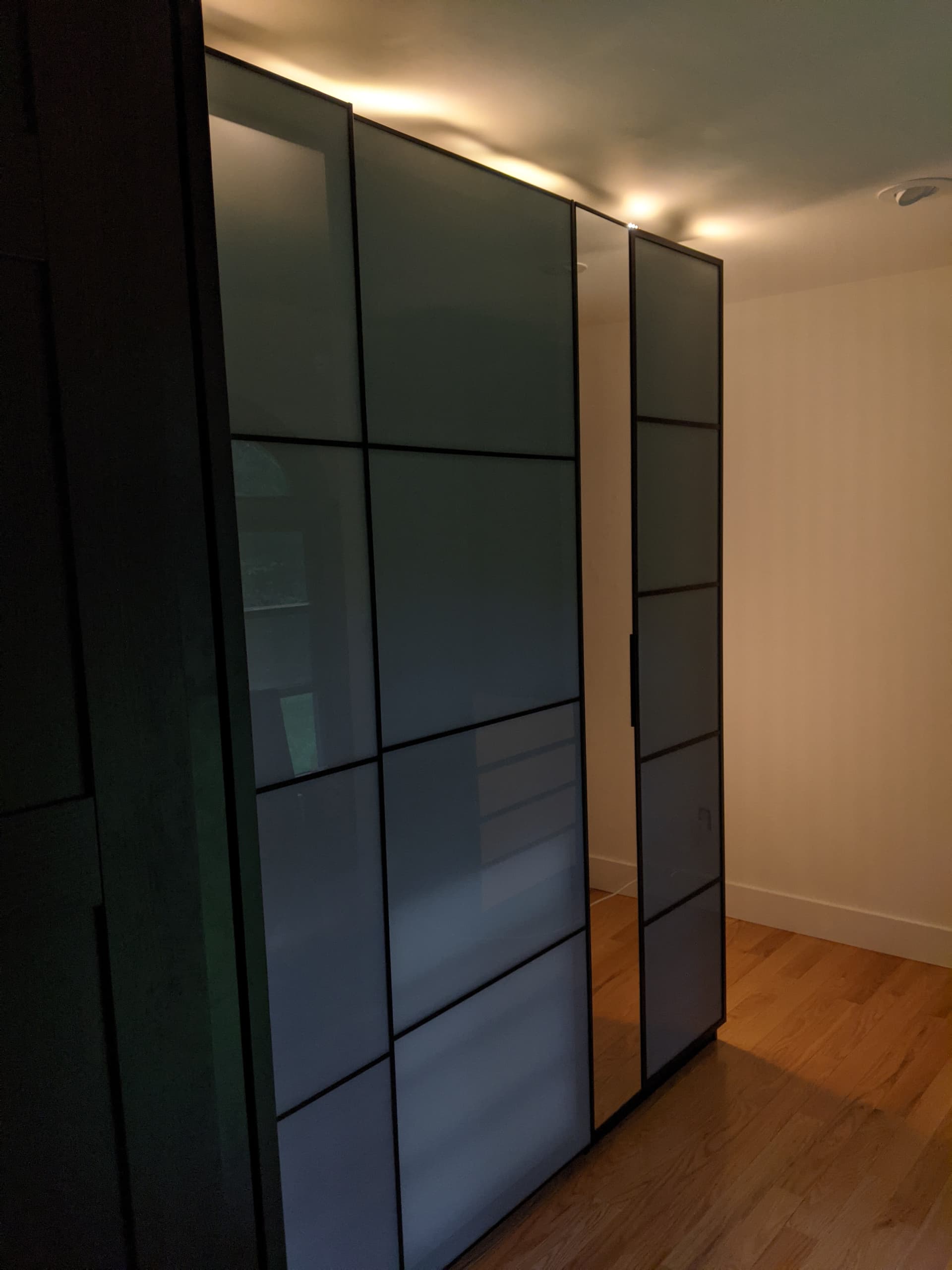 The only annoyance with the controller is that it has faint green and blue LEDs in it that are always on. They are bright enough that they show up in the closet even when the strip is on.