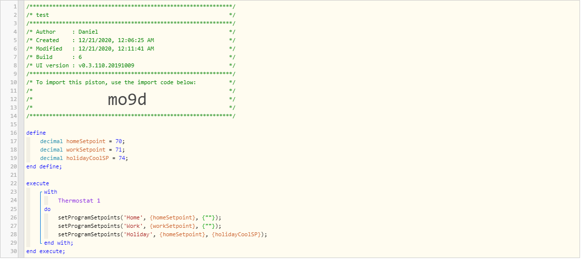 Expanded function call: setProgramSetpoints(String Program_Name, Number heatSetpoint, Number coolSetpoint, Program_Name_2, heatSetpoint_2, coolSetpoint_2, ...)