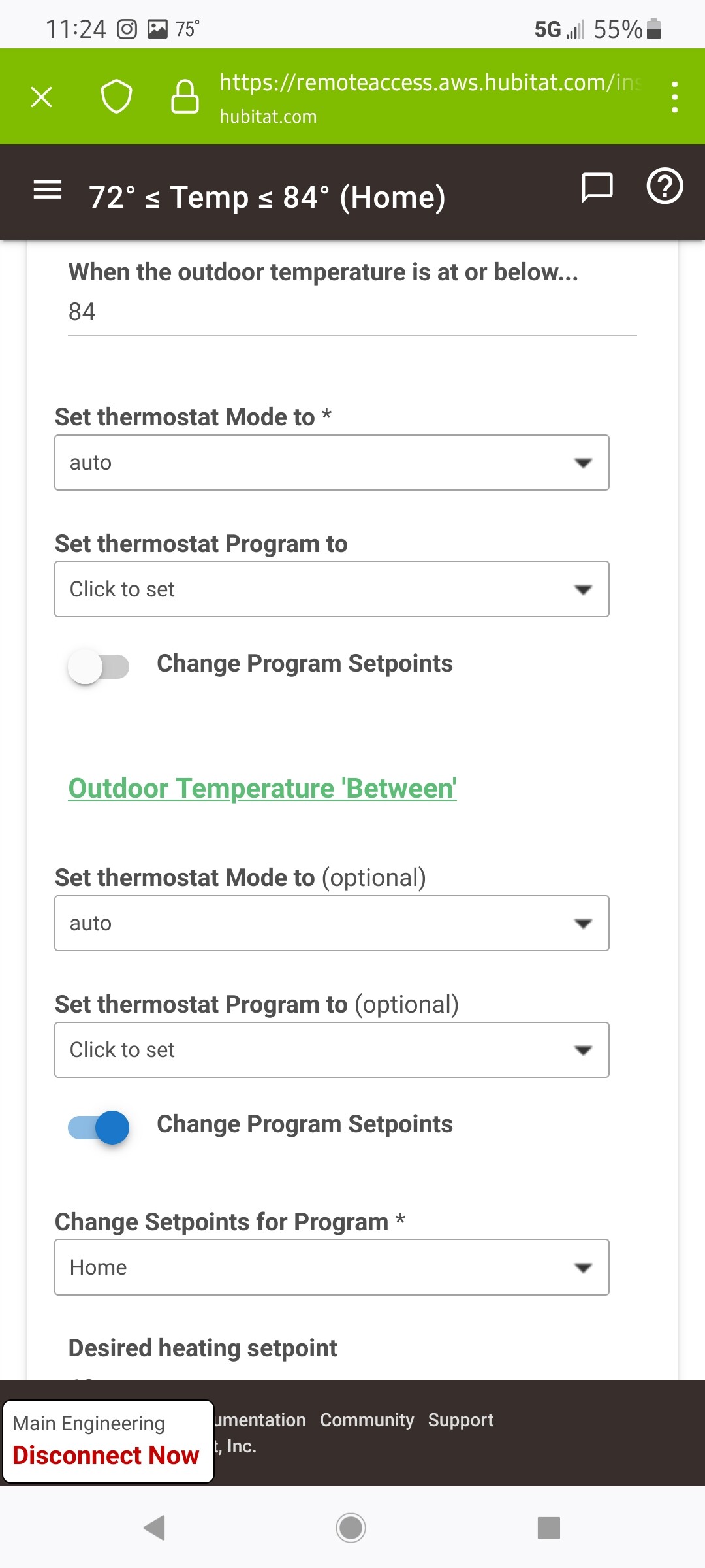 I still can’t see what’s happening (not happening) - what is the Home set point supposed to be changed to when the temperature changes within the range of 72-84 degrees? (That part isn’t in the earlier screen shots).